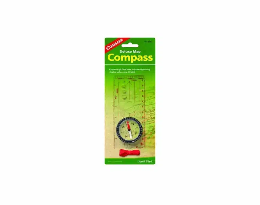 Coghlan`s Kompass er et enkelt væskefyllt kompass som fungerer godt til de fleste turer i skog og mark. Selvlysende kompassnål, markeringspunkter, tommer og milimeter mål samt forstørrelsesglass i platen.