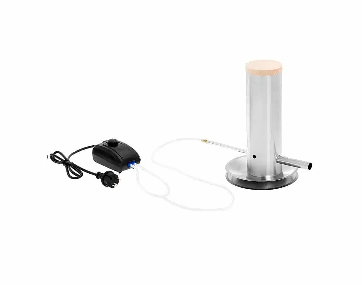 Kaldrøykgeneratoren er laget av toppkvalitets rustfritt stål, og mengden røyk som genereres kan enkelt reguleres ved å øke eller redusere luftmengden som avgitt fra luftpumpen. Sylinderen har kapasitet til spon for 4–5 timers røyking (ca. 10dl), etterfylling kan utføres under forbrenningsprosessen. Kornstørrelsen og fuktprosenten påvirker forbrenningens hastighet.