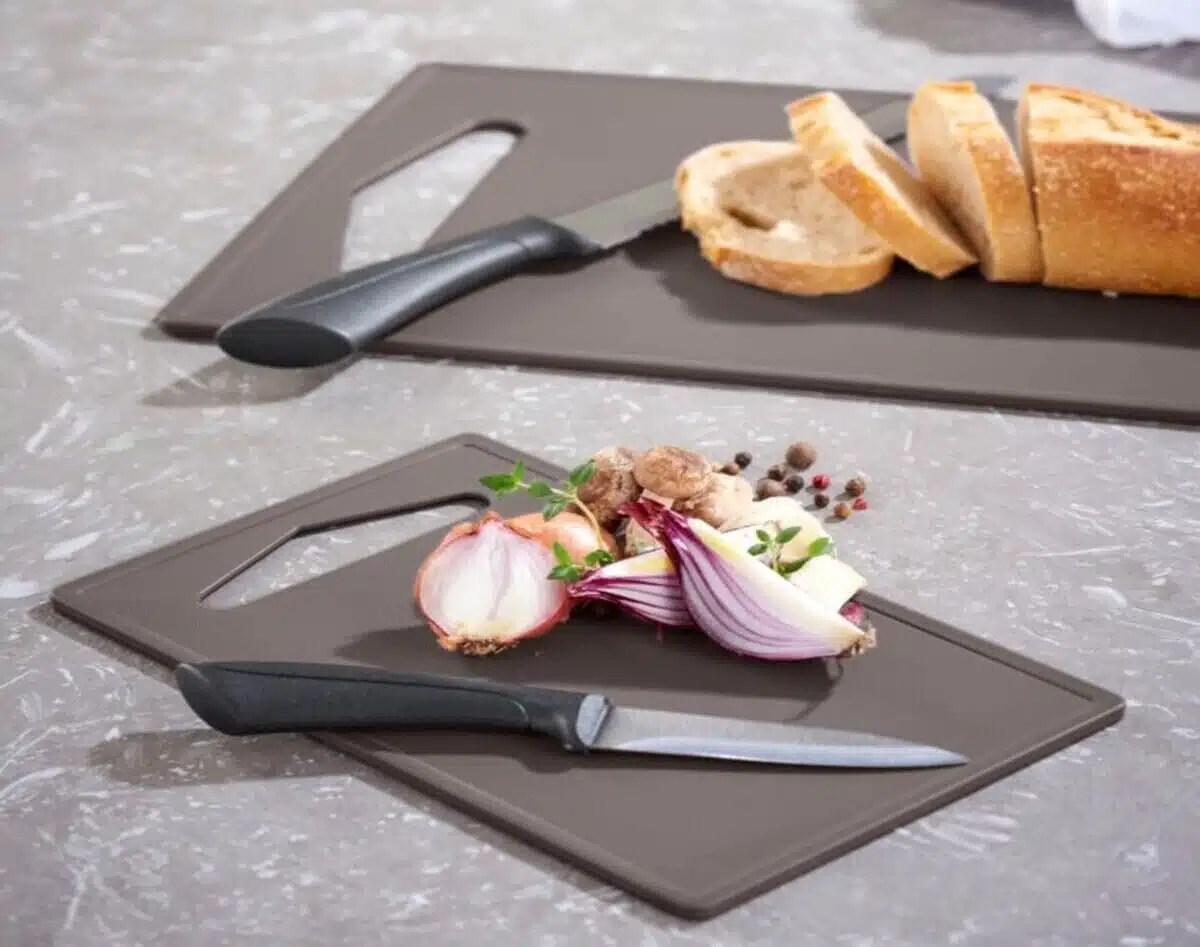 DAY Skjærebrett kommer i pakke à 2 stk brett i ulike størrelser, og tåler å vaskes i oppvaskmaskin. Brettene måler 15x25x0,5cm og 25x35x0,5cm.