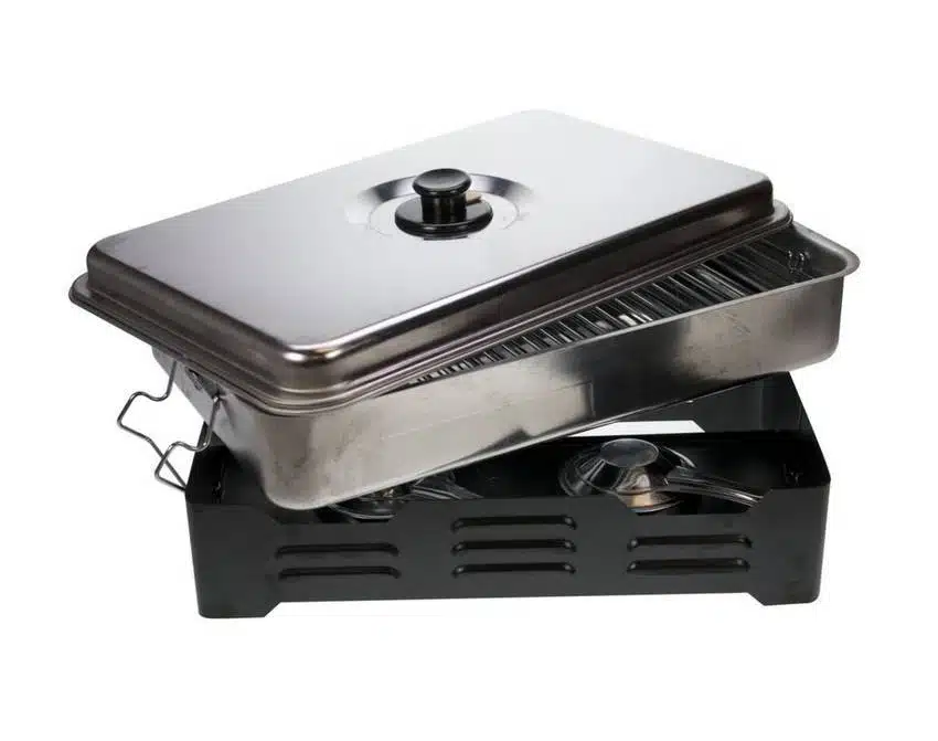 Wiggler varmrøyker er en klassisk røykovn i rustfritt stål. Med 2 rødspritbrennere varmrøyker du fisk- og kjøttprodukter effektivt i ett til to lag.
